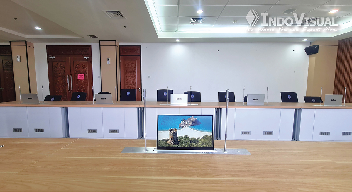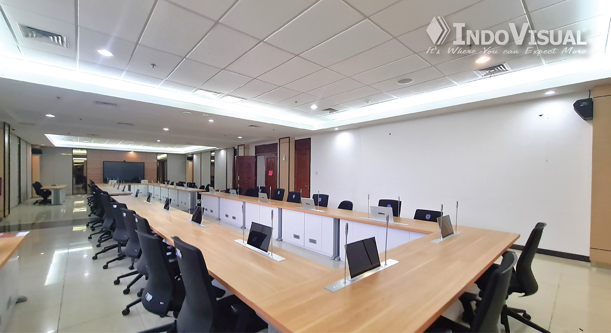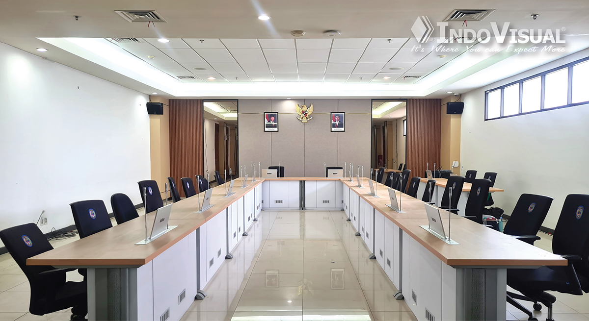 Untuk mendukung jalannya rapat yang lebih modern dan efisien, Indovisual bersama partner menghadirkan solusi teknologi berupa Aubern Paperless Conference System. Sistem ini membuat proses rapat menjadi lebih rapi dan praktis karena tidak lagi bergantung pada dokumen kertas yang menumpuk di meja. Sebanyak 28 unit perangkat dengan layar 15 inci telah terpasang di ruang meeting utama, sehingga setiap peserta dapat langsung mengakses materi, dokumen, maupun presentasi secara digital.