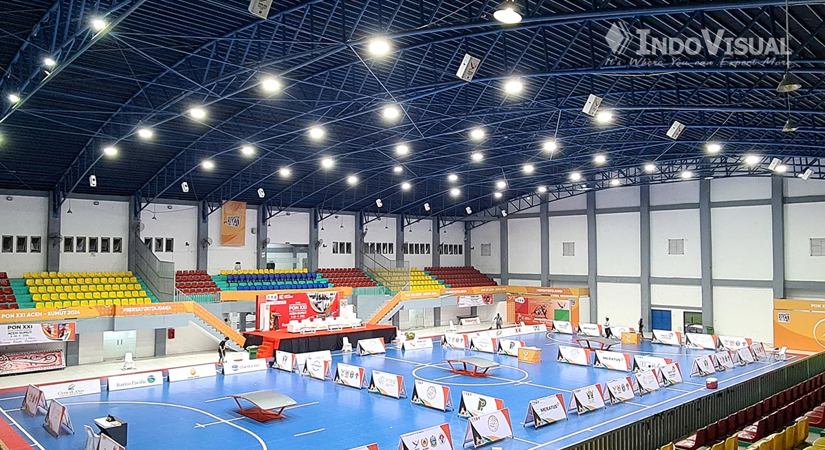 Gedung ini merupakan yang terbesar di area pertandingan PON dan diperuntukkan untuk beberapa jenis pertandingan, termasuk Wushu dan Aerobik. Untuk memenuhi kebutuhan audio di tribun, tersedia 32 unit Aubern ALM-10, 8 unit AW-8, dan 4 unit AFR-12. Di lapangan, dipasang 20 unit speaker line array Aubern QOP-210 dan 12 unit ASW-18 sebagai subwoofer. Selain itu, terdapat Aubern Microphone Wireless handheld dan perangkat pendukung audio processing untuk memastikan kualitas suara yang optimal selama acara.