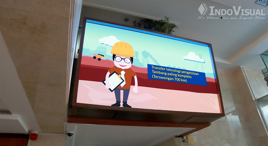 Terkait hal tersebut Indovisual menerapkan Led Display dari Absen CR 1.2 pada lobby, Absen Icon E138 dan Promethean Cobalt 75″ untuk ruang meeting.