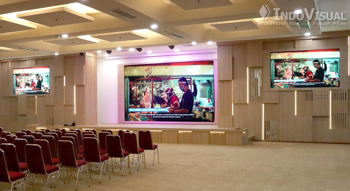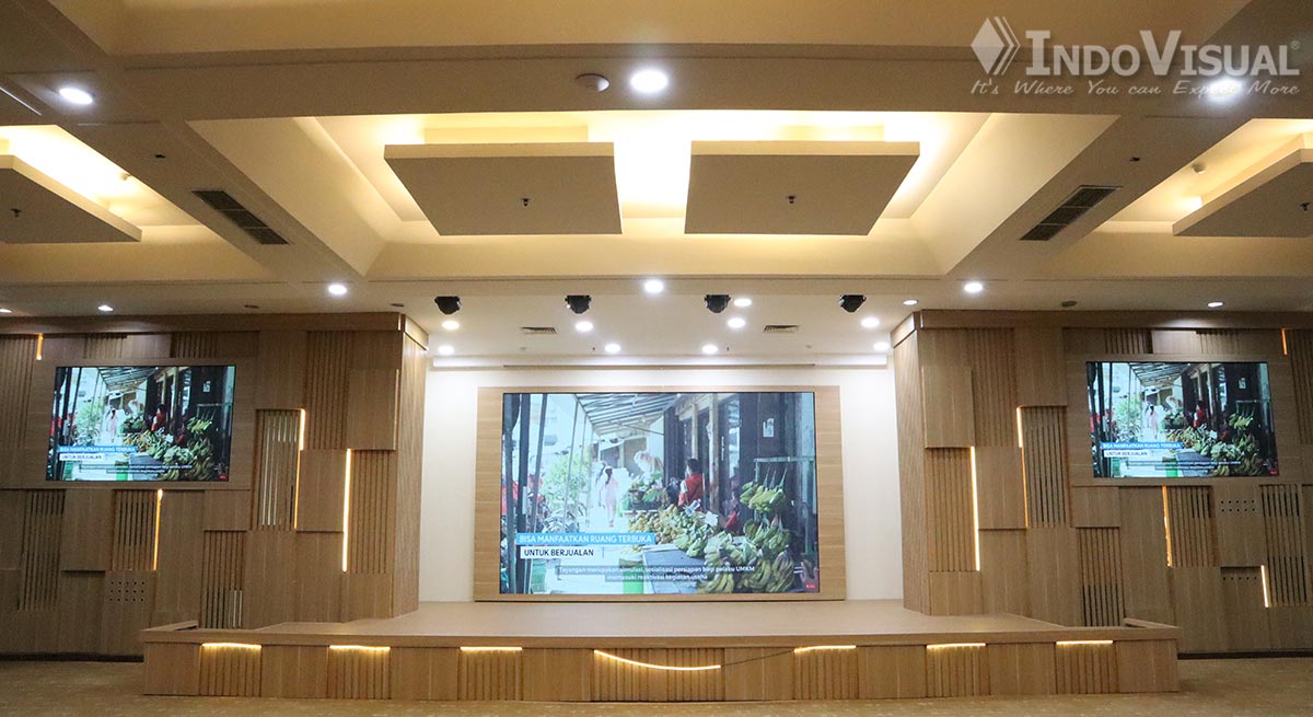 Oleh sebab itu, Indovisual memberikan solusi berupa LED Display Indoor di Ruang Auditorium Kementerian. Solusi ini tidak hanya menghadirkan peningkatan visual yang signifikan tetapi juga mendukung kebutuhan komunikasi yang dinamis dan interaktif.