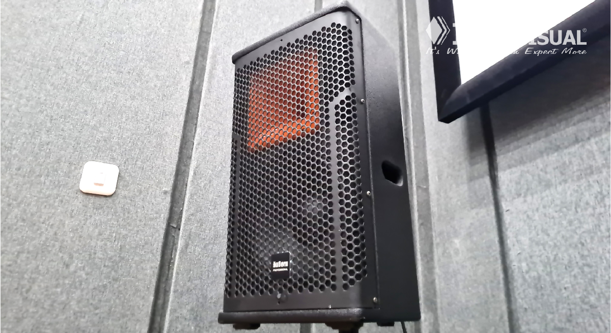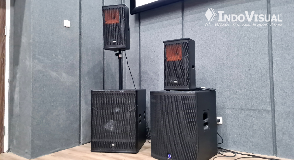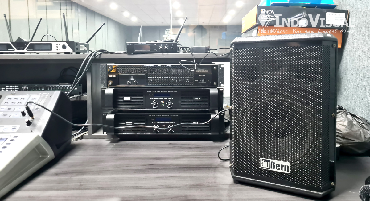 Melihat kebutuhan tersebut, Indovisual bersama partner menghadirkan solusi audio yang dirancang khusus untuk ruangan ini. Sistem baru ini mengandalkan empat unit Aubern ALM-10 sebagai speaker utama untuk menghasilkan suara yang merata dan detail, ditambah dua unit Aubern ASW-18 subwoofer yang memperkuat frekuensi rendah agar bunyi bass terasa lebih hidup. Di ruang kontrol, satu unit Aubern GT-8 berfungsi sebagai pusat kendali dan dilengkapi perangkat pendukung audio lain yang memastikan performa sistem selalu optimal.